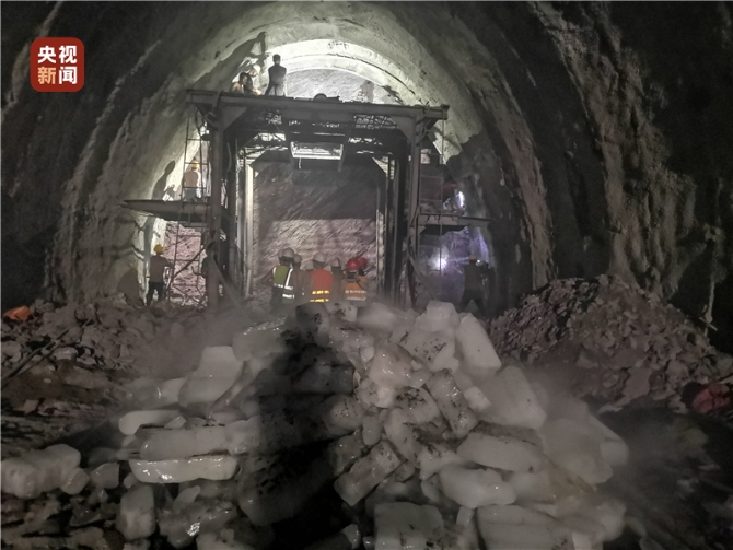 为改善作业环境,提升作业效率,有序推进建设,现场采用调整风机接力位置、增加射流风机数量,平均每天运送70吨冰块到进出口施工点物理降温等措施,大幅度降温、降尘、增氧,有效改善了洞内作业环境,确保了隧道有序建设。