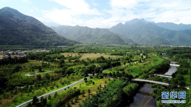 这是陕西省西安市长安区秦岭违建别墅拆除后建设的秦岭和谐森林公园(2019年7月26日摄,无人机照片)。新华社记者 刘潇 摄