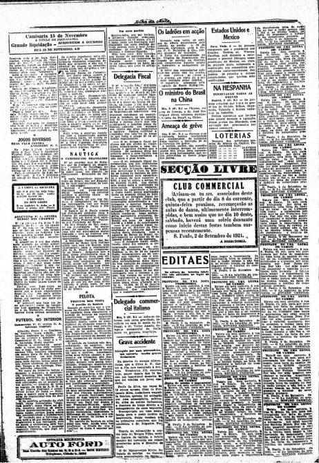 1921年,巴西目前发行量最大的报纸《圣保罗页报》(时名《圣保罗夜报》)创刊,并于当年9月5日发表了第一条与中国有关的消息。