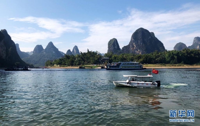 执法船在漓江上巡查(2019年11月14日摄)。新华社记者 卢羡婷 摄