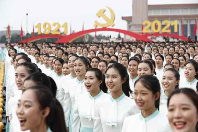 7月1日上午,庆祝中国共产党成立100周年大会将在北京天安门广场隆重举行。这是合唱团在准备。