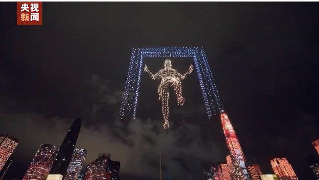 2021架无人机组成了特别的图案——神州十二号飞船飞入太空,成功对接空间站。人们为伟大祖国取得如此辉煌的成就欢欣庆祝。一只象征着深圳的“大鹏鸟”振翅欲飞,寓意着这座城市将继续乘势而上,腾空翱翔!新时代的深圳,将永葆“闯”的精神、“创”的劲头、“干”的作风,努力续写更多“春天的故事”,努力创造让世界刮目相看的新的更大奇迹! (总台记者周羽 刘祎辰 深圳台)