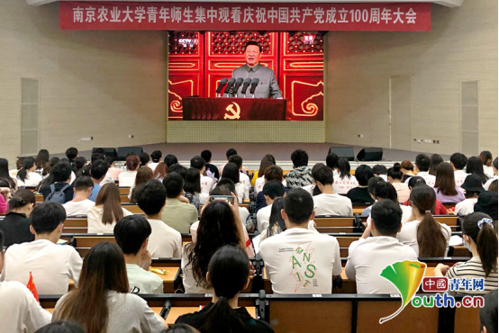 南京农业大学师生在观看庆祝中国共产党成立100周年大会直播。南京农业大学供图