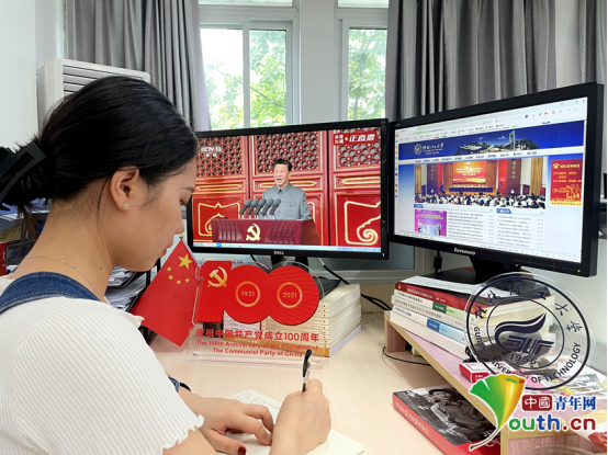 桂林理工大学学生在观看庆祝中国共产党成立100周年大会直播。桂林理工大学供图
