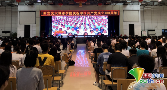 西安交通大学城市学院师生在观看庆祝中国共产党成立100周年大会直播。西安交通大学城市学院供图