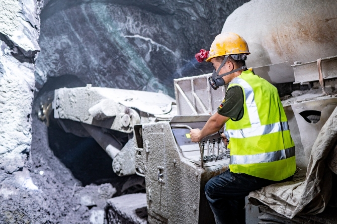 中铁八局大瑞铁路秀岭隧道出口工区经理乔志强介绍,受地理地形限制,秀岭隧道只能采取进出口两头长距离掘进的方式,隧道平导单口掘进9677米、正洞单口掘进10公里以上,刷新了同类隧道独头掘进的最长纪录。