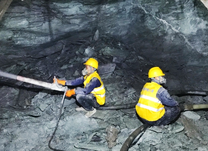 随着隧道不断向前掘进,让建设者备受煎熬的高地温随之而来。从2017年开始,隧道进口施工最前端的掌子面温度最高时达到43℃,洞内空气湿度接近100%,全隧采用巷道式通风,工作面的含氧量低,较洞口降低30%,相当于在海拔4000米以上的高原地区作业,高温高湿缺氧让常人难以忍受,人员和机械施工效率大幅降低。据统计,先后有1万多名建设者参与施工,实属罕见。