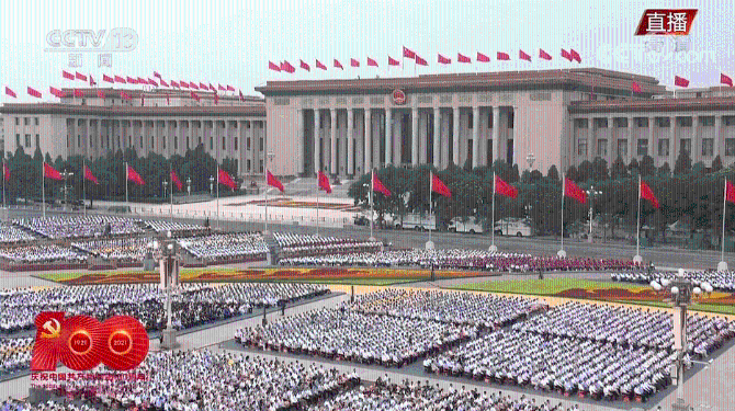 7月1日上午,庆祝中国共产党成立100周年大会在北京天安门广场隆重举行。新华社记者 张晨霖 摄