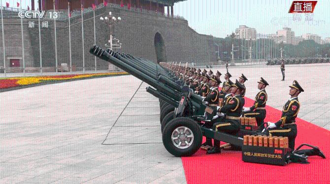 7月1日上午,庆祝中国共产党成立100周年大会在北京天安门广场隆重举行。这是礼炮鸣响。新华社记者 彭子洋 摄