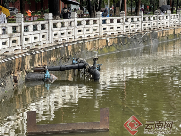随着水泵的运转,清澈的水源流入翠湖,泛起一朵朵水花。7月1日,清水入翠——翠湖补水泵站及补水管网改造工程正式通水。该工程全长约2.5公里,新建自动化泵站一座,引盘龙江优质水源和第四水质净化厂的净化水作为翠湖公园的供应水源,保证每天3.2万立方米的补水量。至此,翠湖换水周期由原来近30天缩短至5天,将大大改善翠湖水质。