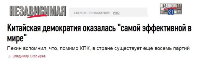 俄罗斯《独立报》日前刊发弗拉基米尔·斯科瑟列夫撰写的文章《中国民主是“全球最有效的”》。文章说,中国国务院新闻办公室日前发布的《中国新型政党制度》白皮书称,中国新型政党制度是马克思主义政党理论与中国实际相结合的产物,是中国共产党、中国人民和各民主党派、无党派人士的伟大政治创造。它的本质是中国共产党执政,各民主党派在中共领导下参政议政。俄罗斯的一些政治家和评论家称中国的经验具有启发性,值得认真研究。