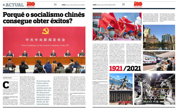 安哥拉《国家报》日前发表安哥拉前驻香港总领事科佩蒂诺的署名文章《中国特色社会主义为什么能成功》。文章指出,中国共产党是中国特色社会主义事业的领导核心,是执政党,党的领导作用体现为“集中力量办大事”,体现为总揽全局、同向发力的效率。正是有了坚强的领导核心,才能够把全国各族人民紧密团结起来,形成凝聚万众一心、无坚不摧的磅礴力量,才能取得举世瞩目的伟大成就。