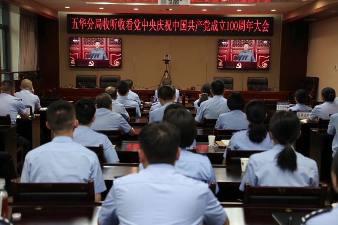 7月1日上午,庆祝中国共产党成立100周年大会在北京天安门广场隆重举行。中共中央总书记、国家主席、中央军委主席习近平发表重要讲话。昆明市公安局五华分局及各部门组织收听收看大会盛况。