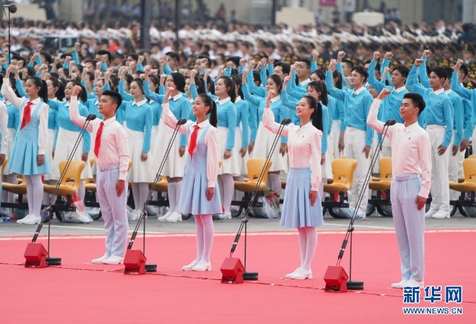 7月1日上午,庆祝中国共产党成立100周年大会在北京天安门广场隆重举行。这是共青团员和少先队员代表集体致献词。新华社记者 陈晔华 摄