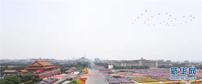 7月1日上午,庆祝中国共产党成立100周年大会将在北京天安门广场隆重举行。这是飞行庆祝表演。新华社记者 李响 摄