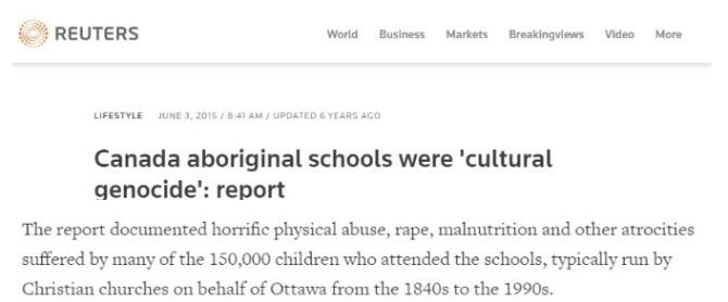 加拿大联邦成立后,逐步建立原住民儿童寄宿学校制度,强制对原住民进行所谓“同化”。2015年加拿大真相与和解委员会公布的一份报告显示,自19世纪40年代到20世纪90年代,至少有15万原住民儿童被强制送入寄宿学校。