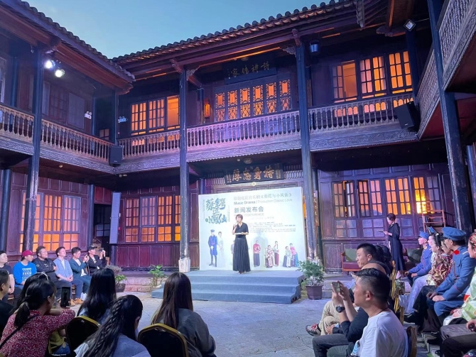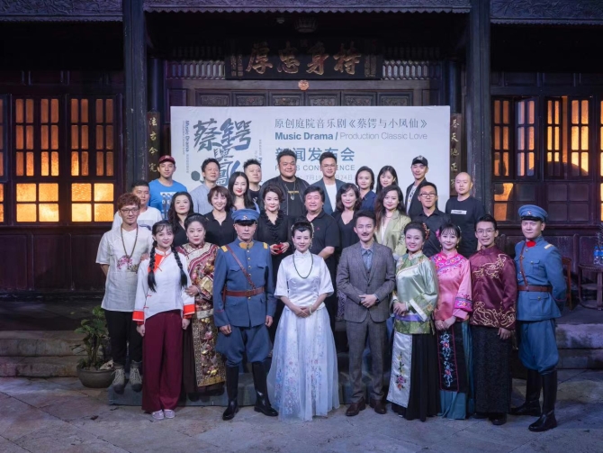 昆明信息港讯 记者劳学丽 由云南钟声音乐制作有限公司独家出品的首部原创庭院音乐剧《蔡锷与小凤仙》于7月2日在钱王街16号银柜总兵府庭院剧场举行新闻发布会。发布会现场,该剧出品人、作曲钟霄军携主创团队及全体演员亮相,宣布《蔡锷与小凤仙》首演即将开启。