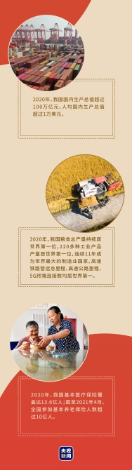 如今,我国全面小康社会建设达到了较高水准,经济实力、科技实力、综合国力跃上新台阶,建成世界最大的社会保障体系——