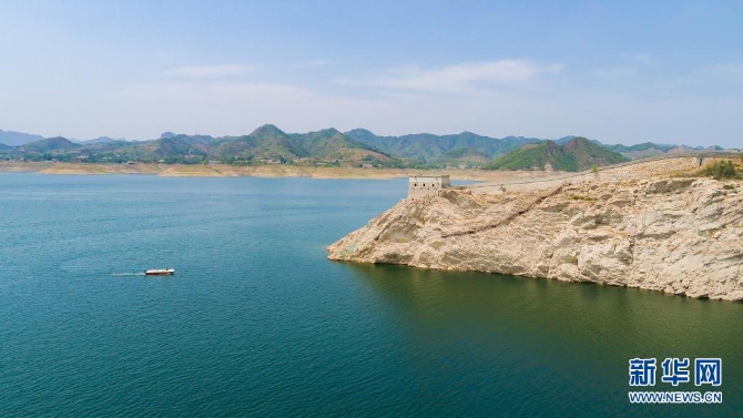 河北省唐山市迁西县喜峰口西潘家口段“水下长城”风光(6月12日摄,无人机照片)。新华社记者 高博 摄