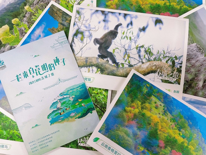 首期活动刚发布就受到全国网友的关注,短短一个月时间吸引到来自重庆、杭州、成都、广州、乌鲁木齐、南京、长沙、济南等地的60余万名网友在线参与活动,聚焦COP15,共话云南生物多样性。而在活动期间,最受欢迎的便是印有云南特色动植物及昆明美景的明信片盲盒,亚洲象、滇金丝猴、绿孔雀、黑颈鹤......一张张明信片讲述了云南的生物多样性,以不同的方式邀请大家聚焦昆明、关注COP15。与明信片搭配送出的花种也获得了大家点赞,网友们收到盲盒后将来自昆明的种子种在花盆,把春城的盛情邀约装进了心里。