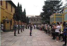 浓密的树林中,菲氏叶猴灵巧的身影时隐时现,有时干脆停在树干上吃起鲜嫩的树叶。记者们架起“长枪短炮”记录下这精彩瞬间,一只带着孩子的母猴安静地睁着大眼打量着不远处的“不速之客”。大家屏住呼吸,生怕惊跑了这群可爱的精灵。