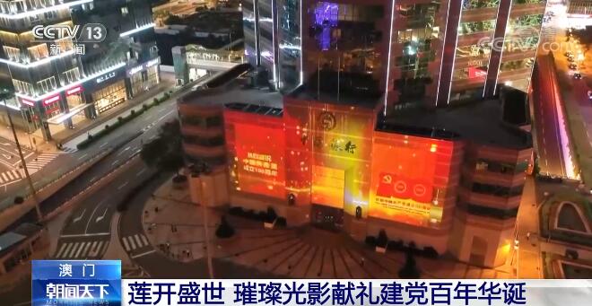 总台记者 肖中仁:我所在的位置是澳门重要的交通枢纽——亚马喇前地,在中国共产党迎来百年华诞,举国欢庆的美好时刻,在我的身后,一场主题为“百年风华 莲开盛世”的光影秀正在上演。
