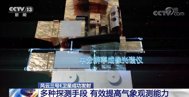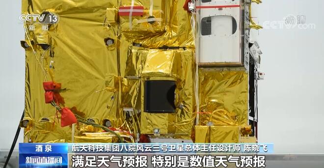 航天科技集团八院风云三号卫星总体主任设计师 陈晓飞:(风云三号) E星新研(制)了3台有效载荷,并对其余的8台仪器进行了升级换代或性能提升,满足天气预报,特别是数值天气预报、防灾减灾、应对气候变化、服务社会经济文明建设等气象业务需求。