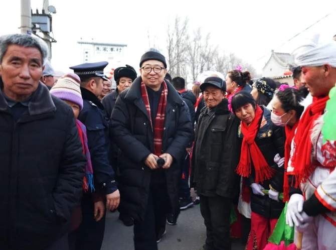 2019年2月16日,陕西省绥德县崔家湾镇调研元宵节民俗表演艺术