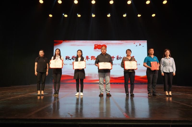 在第三篇章“红色传承”中,盘龙区委“两新”组织工委副书记以唱支rap给党听的形式演唱《红色》,展现了党的十八大以来,“两新”组织积极融入城市基层党建,扩大社会就业、繁荣城乡经济,在脱贫攻坚、新冠疫情防控等中心工作中的重要作用!原创昆明曲剧舞蹈《龙泉探梅》致敬七一勋章获得者—张桂梅,用知识点亮山区女孩儿的求学之路,唱响了新时代共产党人的奋斗之歌!合唱《美丽新时代》,描绘与改革开放新时代同行,从富起来到强起来的彩云之南,感召盘龙儿女自信前行!演出结束,在场领导为优秀表演奖获奖单位、优秀组织奖获奖单位颁奖。