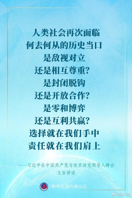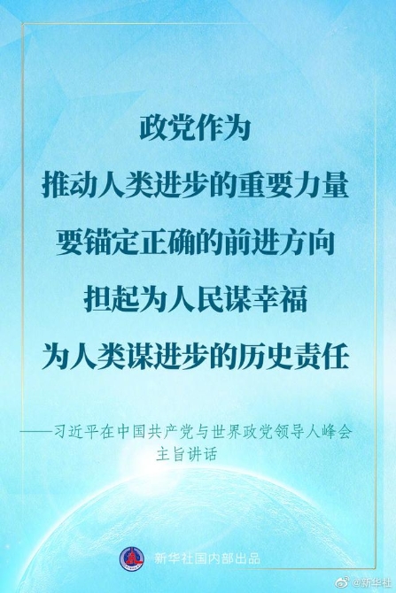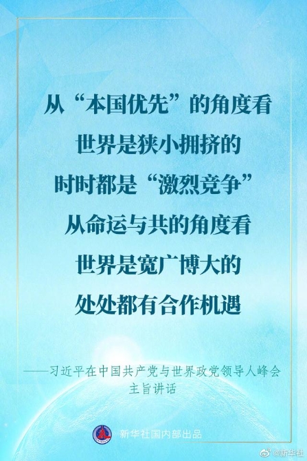 习近平在中国共产党与世界政党领导人峰会上的讲话金句来了!