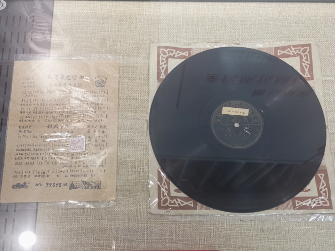 主题展展出的1935年的《义勇军进行曲》黑胶唱片(6月28日摄)。新华社记者许晋豫 摄