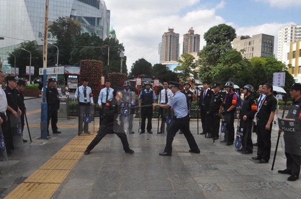 组织在南屏街中心广场和治安志愿者进行防暴处突拉动演练。由护国派出所警务实战小教官对治安志愿者进行防暴处突攻防演练的技能培训,指导治安志愿者如何使用盾牌、防暴棍等处突装备以及如何围堵封控、协同抓捕等处突技能,不断提高志愿者的实战效能,确保大小商圈能“联企联户”“联户联防”“联勤联动”,形成强大震慑。同时,每日组织3至5名临街商铺的治安志愿者,由巡逻警力带队,开展常态化的警民联巡。