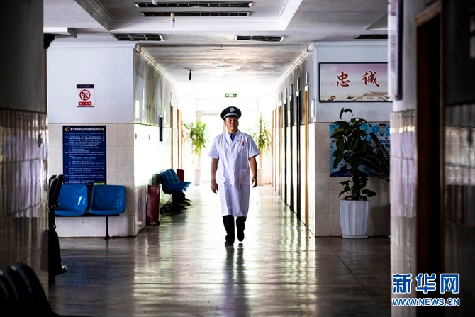 “从学医的第一天起,老师就告诉我们,对待病人要一视同仁。”多年来,面对高墙之内的特殊病患,桂家华秉持医者仁心,尽心尽力地开展诊治。图为桂家华在巡查楼层并询问服刑人员身体状况。新华网发(念新洪/文 王宏兵/摄)