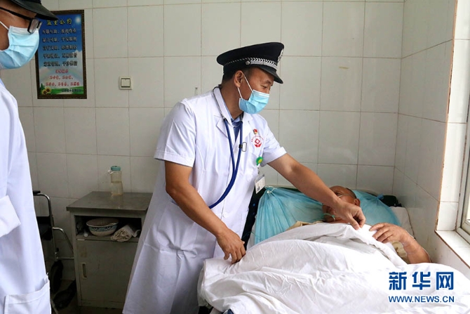 1988年从红河州卫生学校(现红河卫生职业学院)毕业后,桂家华被分配到小龙潭监狱中心医院工作,面对“高墙医生”这个特殊、甚至有些令人生畏的岗位,一起分配来的两名同伴当场就走了,桂家华则选择留下。图为桂家华在检查服刑人员的康复情况。新华网发(念新洪/文 锡乐/摄)