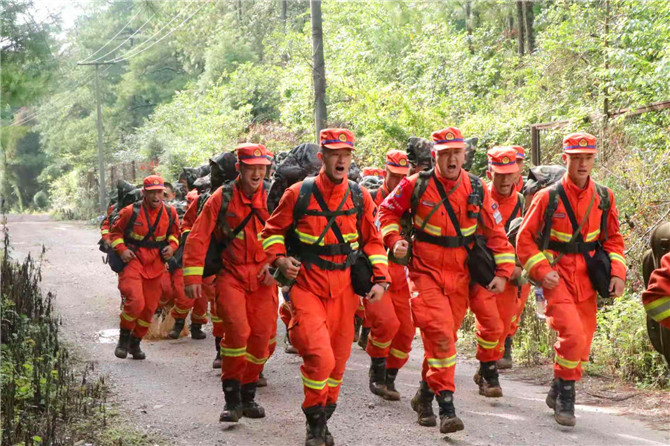 昆明森林消防支队举行野外驻训拉练