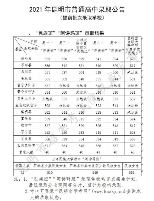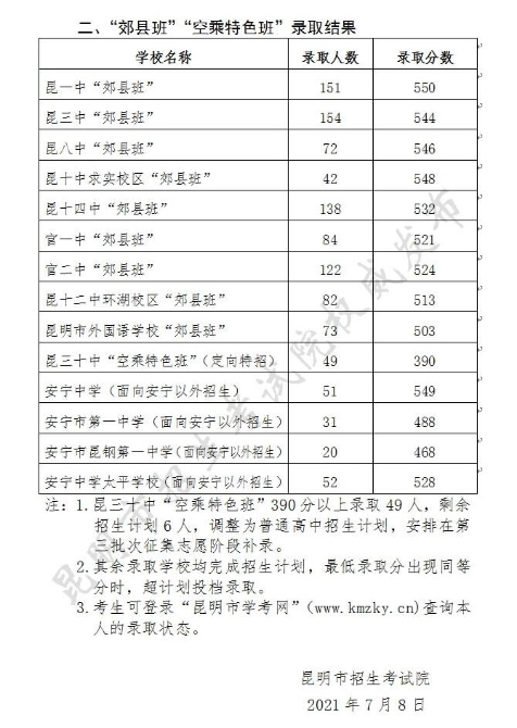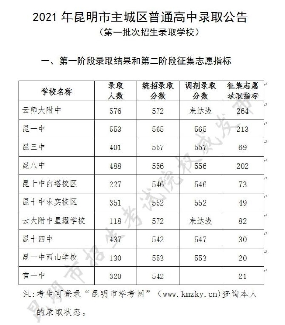 2021昆明中考提前批次和第一批次录取线出炉 最高572分