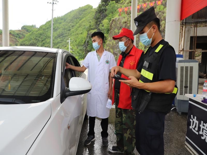 昆明信息港讯 记者昝娟娟 通讯员陈华英 邹昌义 “您好,请出示你的有效证件,并配合测量体温......”在国门哨所龙脖河执勤点,身着藏青蓝的民辅警、身着白色大褂的医护人员,以及身着红色志愿服的志愿者,有序查验进出人员的身份信息和健康状况。当前境外疫情形势依然严峻,执勤人员精神集中、仔细核查,共同筑牢疫情防控的“铜墙铁壁”。