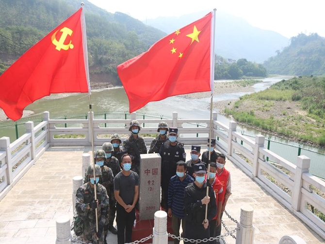 在龙脖河附近的沿边交通要道,一座座活动板房、一顶顶帐篷、一面面党旗和国旗耸立其间的疫情防控点。这些疫情防控点由勐桥乡党委政府主导建立,发动龙脖河抵边村寨边民组成的志愿者24小时进行值守,观察报告外来人员、临界人员情况,并对便道小路和边境线进行巡查,随时关注边境动态,一旦发现异常,及时向上级和边境派出所报告,严防境外人员越境和不法分子绕关避卡。