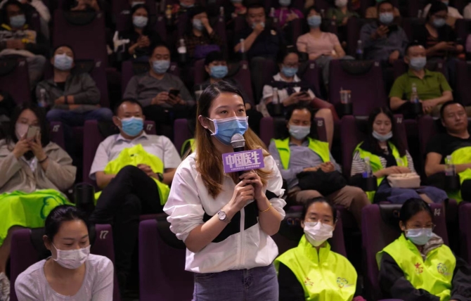 影片放映结束后,观众爆发出热烈的掌声,多位参与抗疫一线的医务工作者分享了自己的抗疫回忆。来自儿童医院的援鄂医疗队的医务工作者几度哽咽,“我以为我快忘记那段日子了,但是今天看电影的时候我一直在流眼泪,仿佛又回到咸宁。” 活动现场,市民为他们送上了献花,感谢他们做出的贡献。