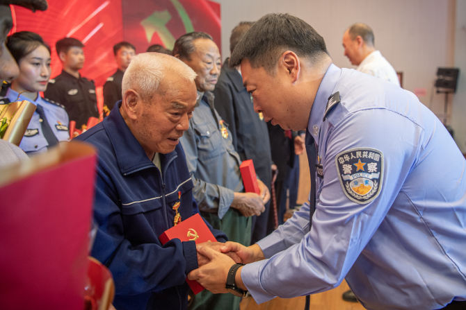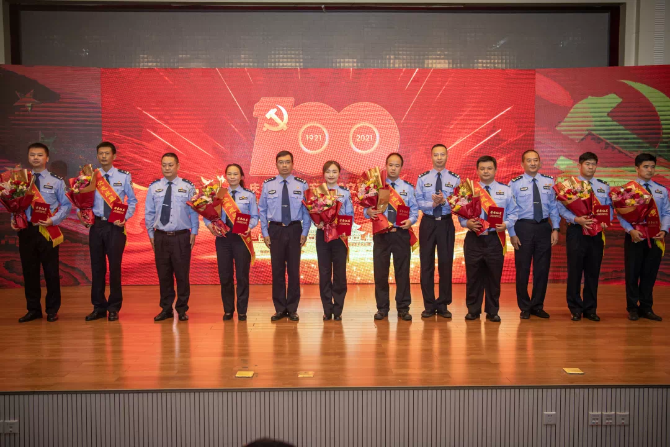 昆明信息港讯 记者合宇聪 日前,昆明市公安局呈贡分局举行“燃情七月 党耀我心”主题活动庆祝中国共产党成立100周年。表彰2021年度优秀共产党员、优秀党务工作者及先进基层党组织,并为到场的12名老党员代表颁发了“光荣在党50年”纪念章。