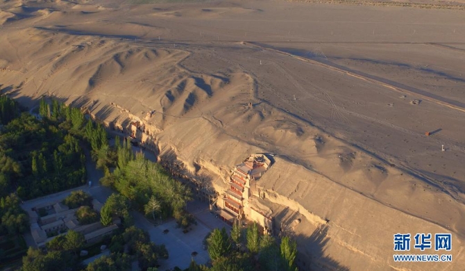 世界文化遗产莫高窟(2016年9月7日摄,无人机照片)。新华社记者 陈斌 摄