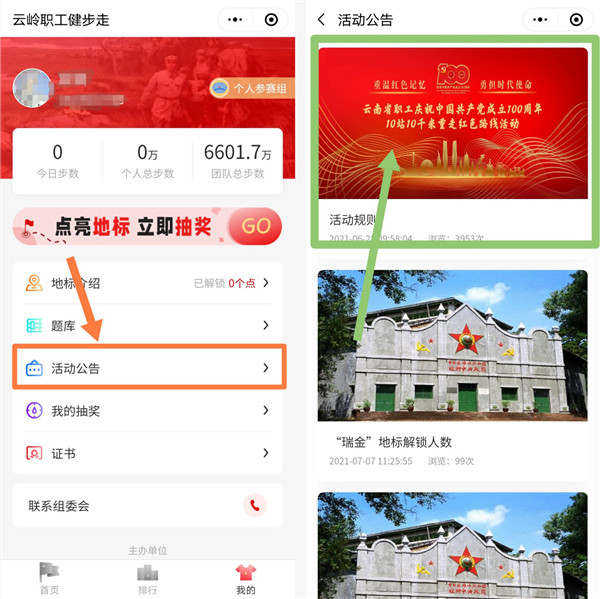 线上活动指南,带你玩转“云岭职工健步走”小程序: