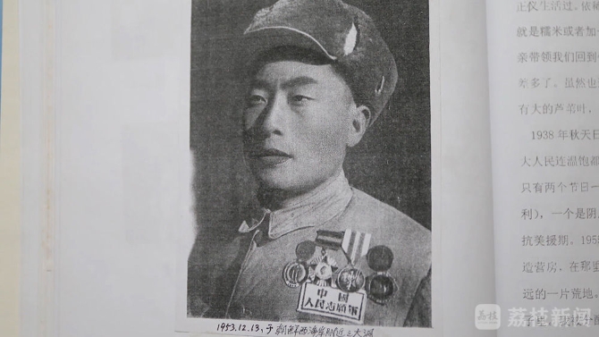 在朱亚的家中,珍藏着许多革命年代的“纪念品”:中国人民抗日战争胜利70周年纪念章、庆祝中华人民共和国成立70周年纪念章、中国人民志愿军抗美援朝出国作战70周年纪念章,还有各式各样的剪报、文章摘录等。一块压在盒子最底下的白布,被塑料袋小心翼翼地保护着,引起了蒋卓昀的好奇。