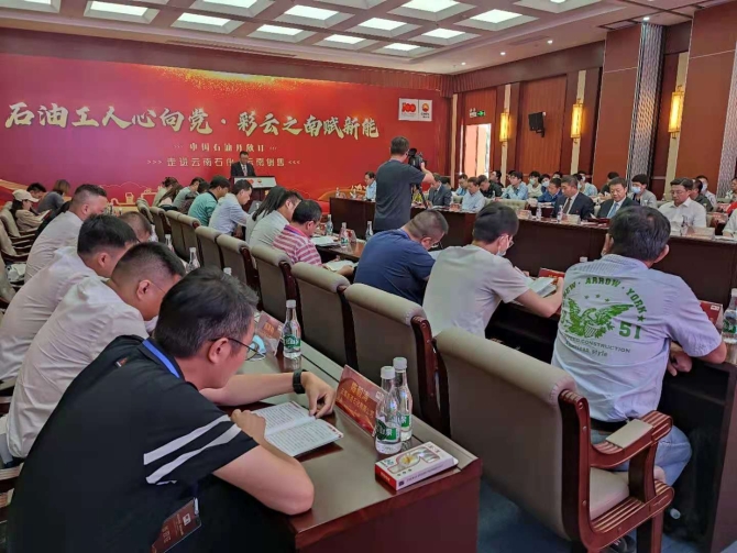 云南销售公司执行董事、党委书记刘启然介绍了云南销售始终秉承“以质取胜、以量取信、诚信经营”的方针,从节能减排、保护环境到抗震救灾,从帮扶贫困地区脱贫致富到千方百计助力“云品出滇”……自觉担当起中国石油的责任和使命,发挥了“压舱石”作用。目前其销售链已遍布全省129个县的823座加油站和8座油库,24小时不间断服务,每年为云南人民加油服务1.1亿人次。十三五以来,累计向全省供应成品油2414.85万吨;上缴利税25.8亿元。