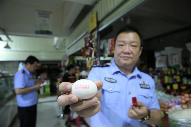 某天,在辖区菜市场,李俊伟看到老人们菜篮子里的鸡蛋,想到了办法。他要做“反诈蛋”,将预防电信网络诈骗标语、电信网络诈骗的危害写在鸡蛋上,让群众带回家。于是一条一条宣传标语被印章盖在了鸡蛋上。