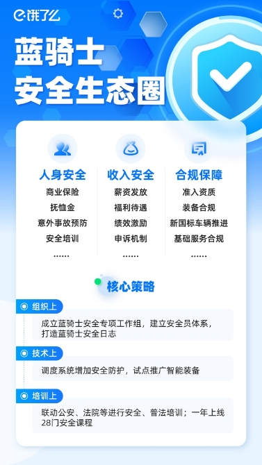 “安全是我们一切工作的基石,是蓝骑士保障的重中之重。”饿了么副总裁刘歆杨称,将升级骑手安全体系,在组织上、技术上和培训上提供更多服务。