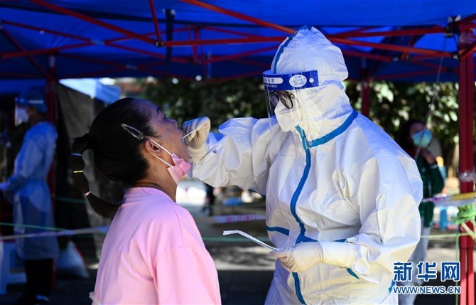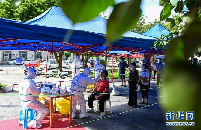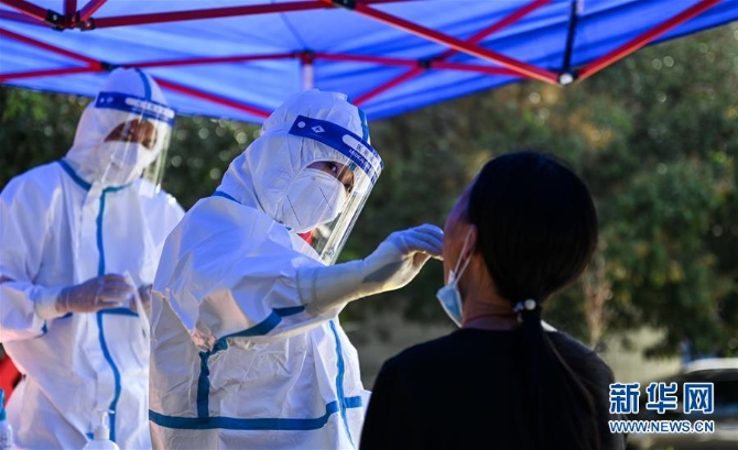 7月8日,防疫人员在友谊社区为居民进行核酸检测。新华社记者 王冠森 摄