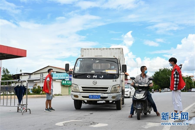 7月7日,志愿者在进行交通劝导。新华社记者 王冠森 摄