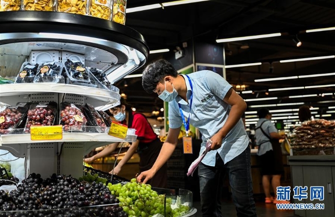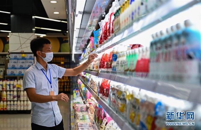 7月7日,工作人员在瑞丽一家超市整理商品。新华社记者 王冠森 摄