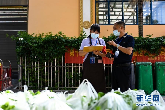 云南省瑞丽市新冠肺炎疫情防控工作指挥部发布通告,7月7日0时起,对主城区实行封闭管理,所有市民居家隔离。目前,瑞丽市在市内设立23处保供点,联合电商配送平台及网格工作人员,保障居民生活必需品供应。(新华社记者 王冠森)